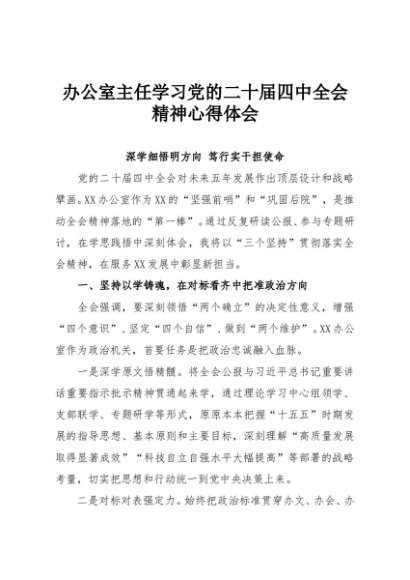 / 【七哥公文】2025年:办公室主任学习党的二十届四中全会精神心得体会+更多免费公文+VX:QiGeGongWen2024