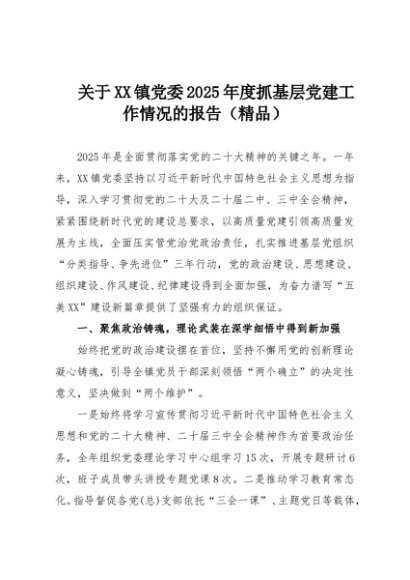 【七哥公文】2025年:关于XX镇党委2025年度抓基层党建工作情况的报告(精品)+更多免费公文+VX:QiGeGongWen2024