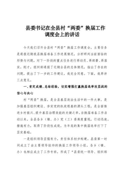 / 【七哥公文】2025年:县委书记在全县村“两委”换届工作调度会上的讲话+更多免费公文+VX:QiGeGongWen2024