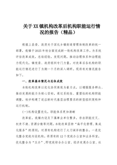 【七哥公文】2025年:关于XX镇机构改革后机构职能运行情况的报告(精品)+更多免费公文+VX:QiGeGongWen2024