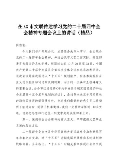 【七哥公文】2025年:在XX市文联传达学习党的二十届四中全会精神专题会议上的讲话(精品)+更多免费公文+VX:QiGeGongWen2024