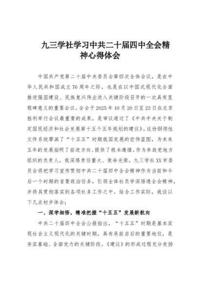/ 【七哥公文】2025年:九三学社学习中共二十届四中全会精神心得体会+更多免费公文+VX:QiGeGongWen2024