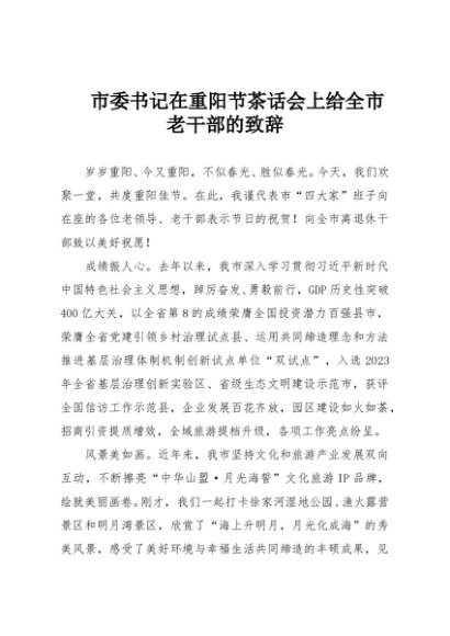 / 【七哥公文】2025年:市委书记在重阳节茶话会上给全市老干部的致辞+更多免费公文+VX:QiGeGongWen2024
