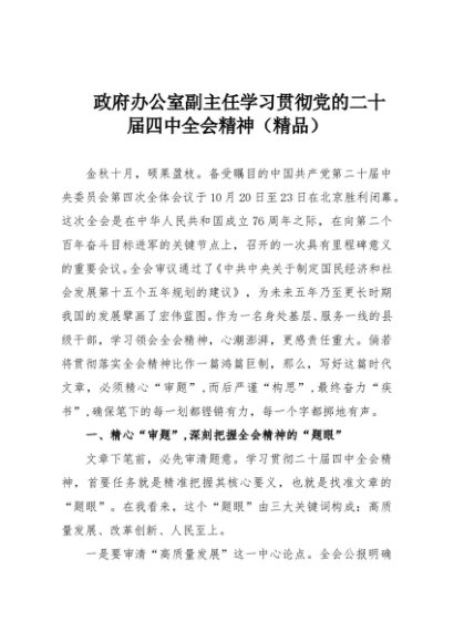 【七哥公文】2025年:政府办公室副主任学习贯彻党的二十届四中全会精神(精品)+更多免费公文+VX:QiGeGongWen2024