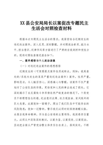 【七哥公文】2025年:XX县公安局局长以案促改专题民主生活会对照检查材料+更多免费公文+VX:QiGeGongWen2024