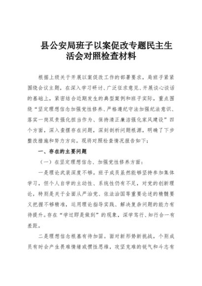 / 【七哥公文】2025年:县公安局班子以案促改专题民主生活会对照检查材料+更多免费公文+VX:QiGeGongWen2024