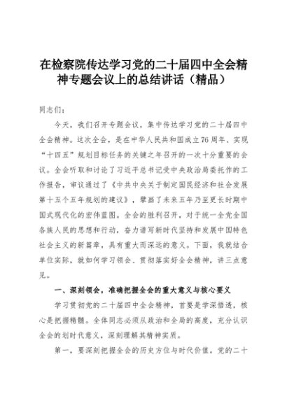 【七哥公文】2025年:在检察院传达学习党的二十届四中全会精神专题会议上的总结讲话(精品)+更多免费公文+VX:QiGeGongWen2024