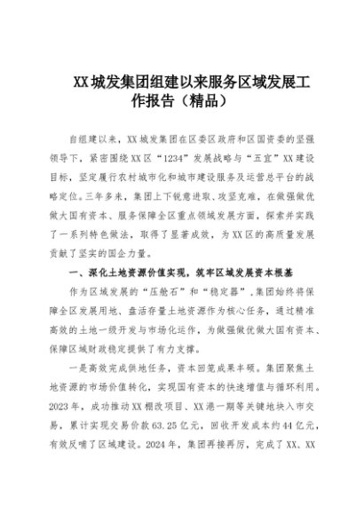 / 【七哥公文】2025年:XX城发集团组建以来服务区域发展工作报告(精品)+更多免费公文+VX:QiGeGongWen2024