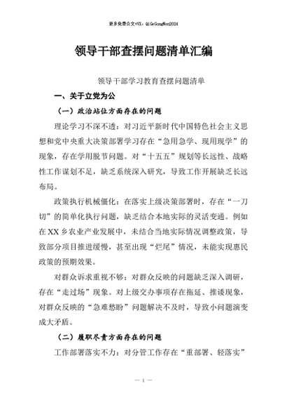 【七哥公文】2026年:领导干部查摆问题清单汇编+更多免费公文+VX:QiGeGongWen2024