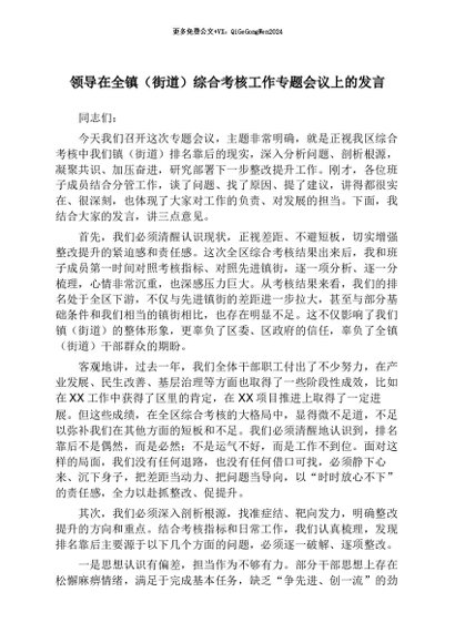 / 【七哥公文】2026年:领导在全镇(街道)综合考核工作专题会议上的发言+更多免费公文+VX:QiGeGongWen2024