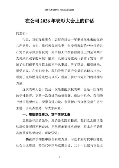 / 【七哥公文】2026年:在公司2026年表彰大会上的讲话+更多免费公文+VX:QiGeGongWen2024