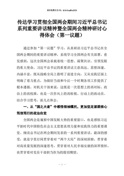 【七哥公文】2026年:传达学习贯彻全国两会期间习近平总书记系列重要讲话精神暨全国两会精神研讨心得体会(第一议题)+更多免费公文+VX:QiGeGongWen2024