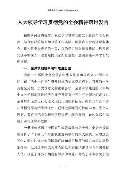 / 【七哥公文】2026年:人大领导学习贯彻党的全会精神研讨发言+更多免费公文+VX:QiGeGongWen2024