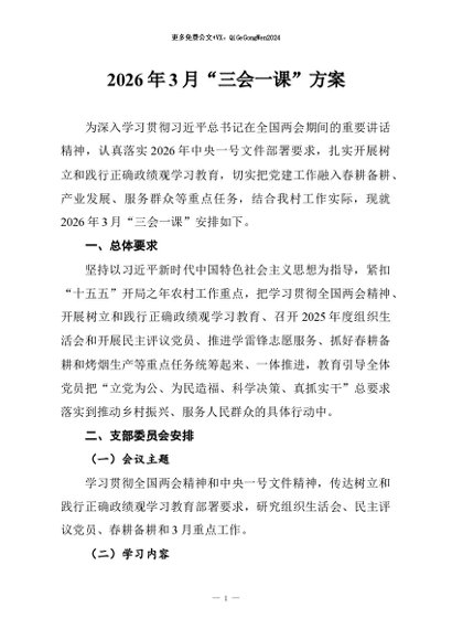 / 【七哥公文】2026年:2026年3月“三会一课”方案+更多免费公文+VX:QiGeGongWen2024