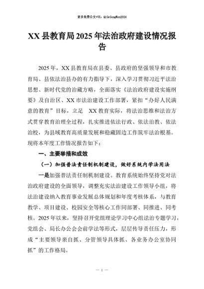 / 【七哥公文】2026年:XX县教育局2025年法治政府建设情况报告+更多免费公文+VX:QiGeGongWen2024
