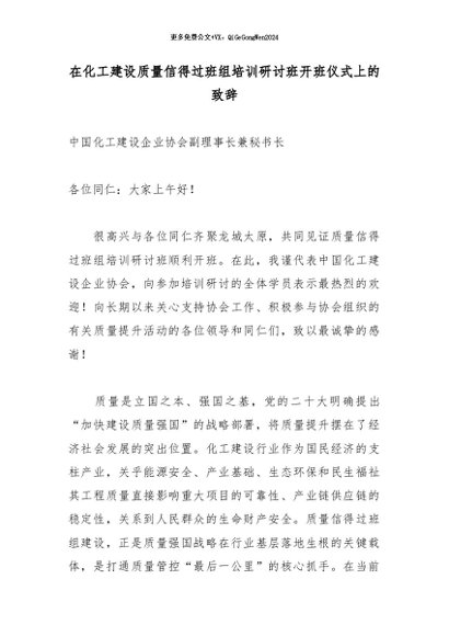 【七哥公文】2026年:在化工建设质量信得过班组培训研讨班开班仪式上的致辞_副本+更多免费公文+VX:QiGeGongWen2024