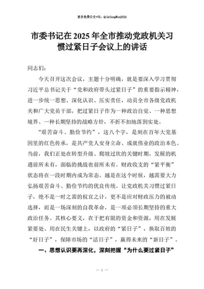 【七哥公文】2026年:市委书记在2025年全市推动党政机关习惯过紧日子会议上的讲话+更多免费公文+VX:QiGeGongWen2024