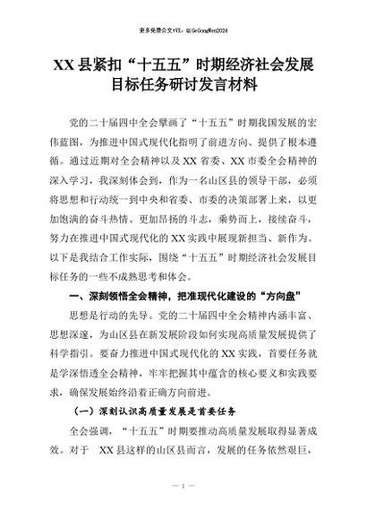 【七哥公文】2026年:XX县紧扣“十五五”时期经济社会发展目标任务研讨发言材料+更多免费公文+VX:QiGeGongWen2024