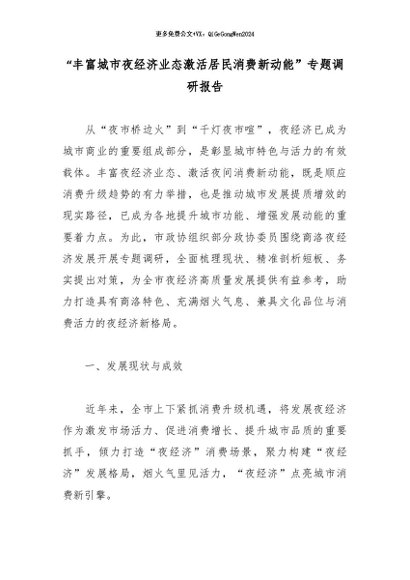 【七哥公文】2026年:“丰富城市夜经济业态激活居民消费新动能”专题调研报告_副本+更多免费公文+VX:QiGeGongWen2024