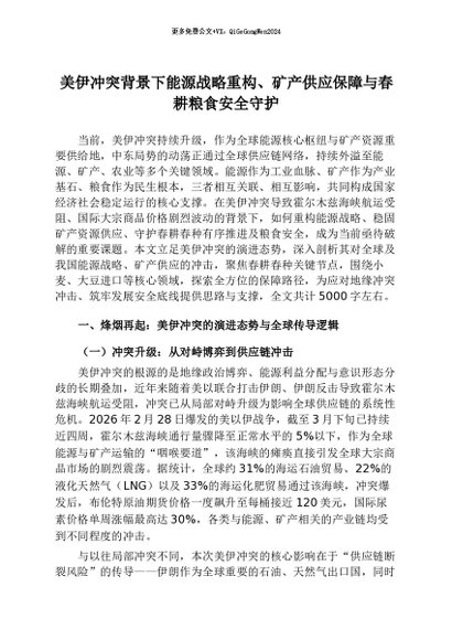 【七哥公文】2026年:美伊冲突背景下能源战略重构、矿产供应保障与春耕粮食安全守护+更多免费公文+VX:QiGeGongWen2024