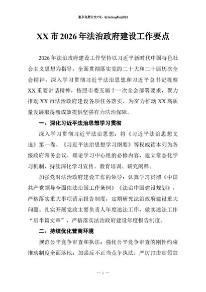 / 【七哥公文】2026年:XX市2026年法治政府建设工作要点+更多免费公文+VX:QiGeGongWen2024