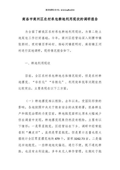 【七哥公文】2026年:商洛市商州区农村承包耕地利用现状的调研报告_副本+更多免费公文+VX:QiGeGongWen2024