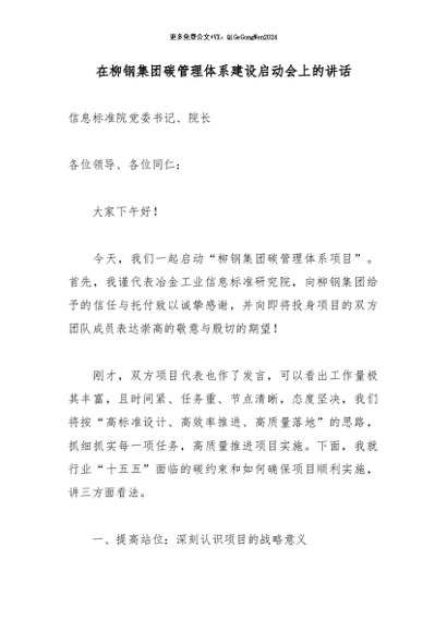 / 【七哥公文】2026年:在柳钢集团碳管理体系建设启动会上的讲话_副本+更多免费公文+VX:QiGeGongWen2024