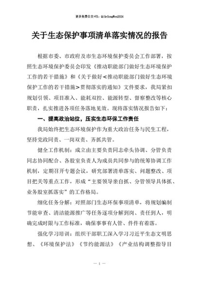 【七哥公文】2026年:关于生态保护事项清单落实情况的报告+更多免费公文+VX:QiGeGongWen2024