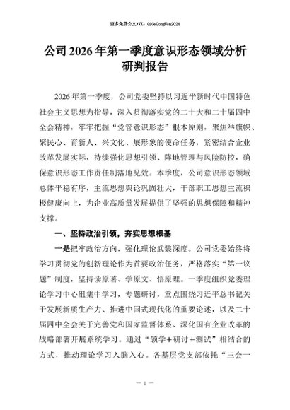 / 【七哥公文】2026年:公司2026年第一季度意识形态领域分析研判报告+更多免费公文+VX:QiGeGongWen2024