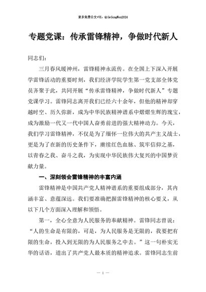 【七哥公文】2026年:专题党课:传承雷锋精神,争做时代新人+更多免费公文+VX:QiGeGongWen2024
