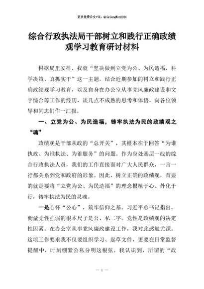 【七哥公文】2026年:综合行政执法局干部树立和践行正确政绩观学习教育研讨材料+更多免费公文+VX:QiGeGongWen2024