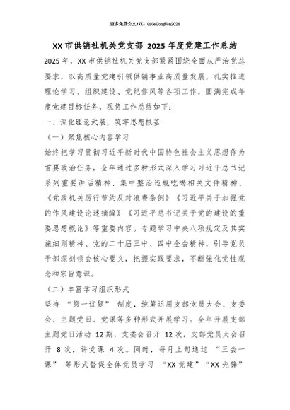 【七哥公文】2026年:XX 市供销社机关党支部 2025 年度党建工作总结_副本+更多免费公文+VX:QiGeGongWen2024