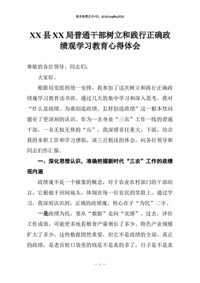 【七哥公文】2026年:XX县XX局普通干部树立和践行正确政绩观学习教育心得体会+更多免费公文+VX:QiGeGongWen2024