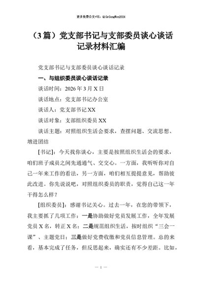 【七哥公文】2026年:(3篇)党支部书记与支部委员谈心谈话记录材料汇编+更多免费公文+VX:QiGeGongWen2024