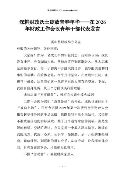【七哥公文】2026年:深耕财政沃土绽放青春年华——在2026年财政工作会议青年干部代表发言+更多免费公文+VX:QiGeGongWen2024