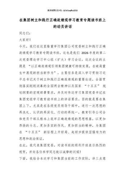 【七哥公文】2026年:在集团树立和践行正确政绩观学习教育专题读书班上的动员讲话_副本+更多免费公文+VX:QiGeGongWen2024