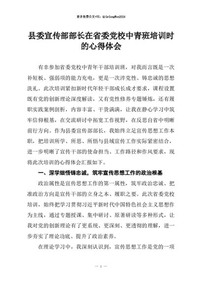 / 【七哥公文】2026年:县委宣传部部长在省委党校中青班培训时的心得体会+更多免费公文+VX:QiGeGongWen2024