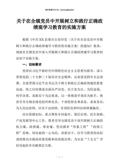 【七哥公文】2026年:关于在全镇党员中开展树立和践行正确政绩观学习教育的实施方案+更多免费公文+VX:QiGeGongWen2024