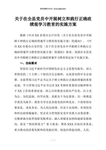 【七哥公文】2026年:关于在全县党员中开展树立和践行正确政绩观学习教育的实施方案+更多免费公文+VX:QiGeGongWen2024