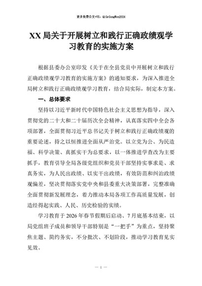 【七哥公文】2026年:XX局关于开展树立和践行正确政绩观学习教育的实施方案+更多免费公文+VX:QiGeGongWen2024