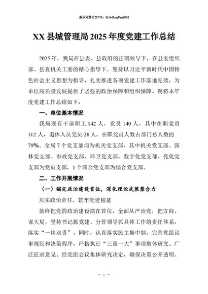 / 【七哥公文】2026年:XX县城管理局2025年度党建工作总结+更多免费公文+VX:QiGeGongWen2024