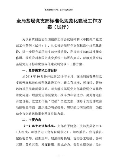 【七哥公文】2026年:全局基层党支部标准化规范化建设工作方案(试行)+更多免费公文+VX:QiGeGongWen2024