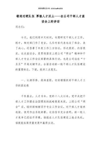 【七哥公文】2026年:锻造过硬队伍 厚植人才沃土——在公司干部人才座谈会上的讲话_副本+更多免费公文+VX:QiGeGongWen2024