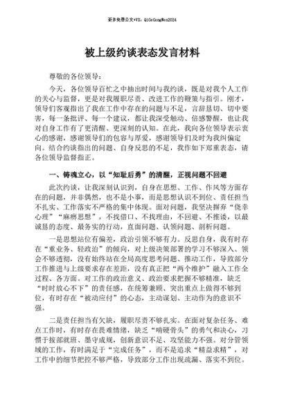 / 【七哥公文】2026年:被上级约谈表态发言材料+更多免费公文+VX:QiGeGongWen2024