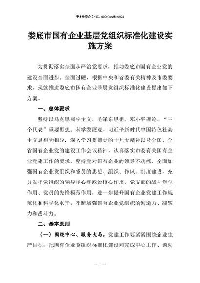 / 【七哥公文】2026年:娄底市国有企业基层党组织标准化建设实施方案+更多免费公文+VX:QiGeGongWen2024