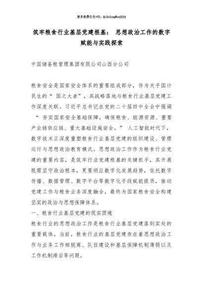 【七哥公文】2026年:筑牢粮食行业基层党建根基: 思想政治工作的数字赋能与实践探索_副本+更多免费公文+VX:QiGeGongWen2024