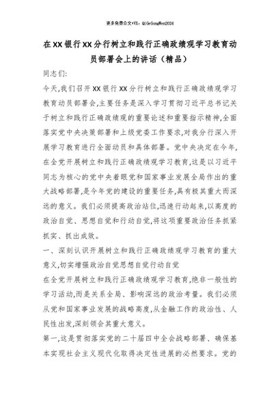 【七哥公文】2026年:在XX银行XX分行树立和践行正确政绩观学习教育动员部署会上的讲话(精品)_副本+更多免费公文+VX:QiGeGongWen2024