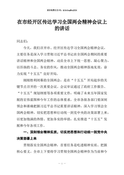 / 【七哥公文】2026年:在市经开区传达学习全国两会精神会议上的讲话+更多免费公文+VX:QiGeGongWen2024