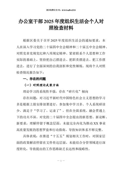 【七哥公文】2026年:办公室干部2025年度组织生活会个人对照检查材料+更多免费公文+VX:QiGeGongWen2024