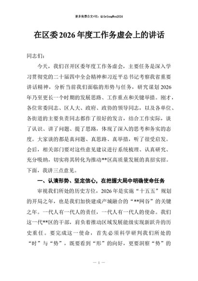 / 【七哥公文】2026年:在区委2026年度工作务虚会上的讲话+更多免费公文+VX:QiGeGongWen2024
